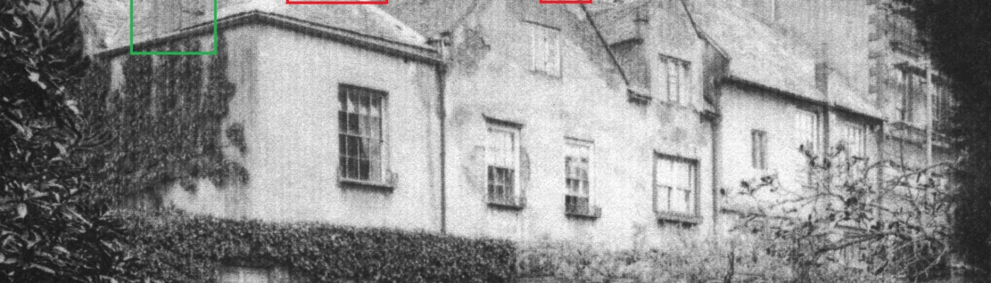 In this c.1898 photo of the Tudor manor house, from left to right the chimneys marked in green are C18 & C19th in creation. The left-hand red highlighted stack dates from c.1590 and services the sixteenth-century kitchen on the ground floor of the south range as well as the rooms either side of that on the floors above. The small red stack in the centre serviced two rooms at the south of the north range but was removed above parapet level in the 1920’s, in line with the other chimneys in the north range. The largest stack, to the far right of the photo, is the oldest and dates from the building of the Tudor Great Hall on the ground floor and services the rooms either side of the visible gable of this building.