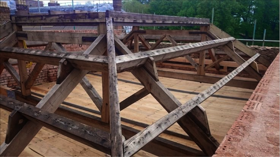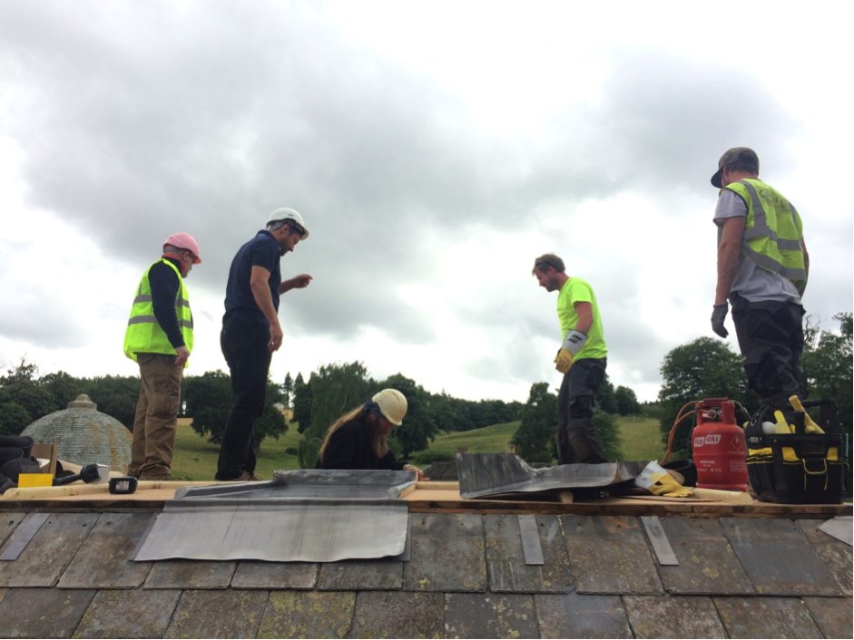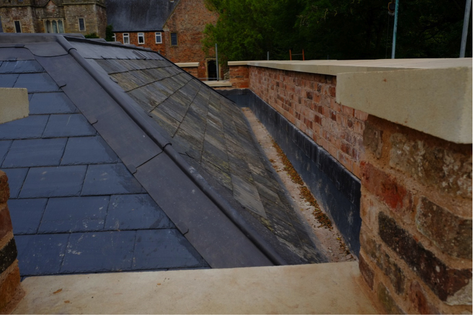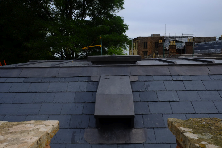 The large and until now empty roof void has been converted to become the estate bat roost, by way of creating bat openings within the roof slates themselves. The bats had, until the creation of this new roost, taken hold of the house and caused restoration delays of over a year within the main buildings. It was vital that this new roost was created in time for the roosting season, so that the bats could be moved by ecologists to this new and rather commodious home. Without a new and suitable home for the various species of bats that thrive at Halswell the essential roof repairs could not begin at the manor house.