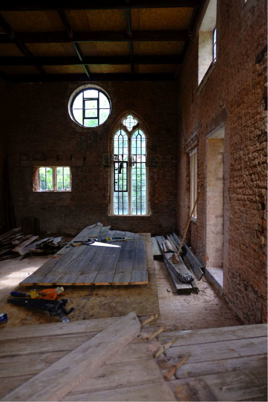 The Coach house, or a building of similar proportions, was on this site by 1756 when it was recorded on the earliest surviving estate map. It is Grade II listed but until this year appears to have had little repair work since it was built. The entire roof structure was being held up by the insertion of two 1950’s red brick partition walls beneath the two original eighteenth-century cross beams.