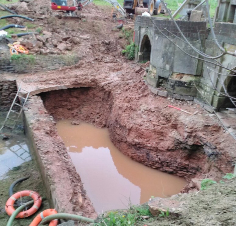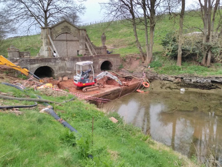While much of the damaged and missing stone is being carved for the restoration of the bridge, the dam works have also been started so that the foundations and leaks are made good before the bridge structure itself is put back to its original glory.