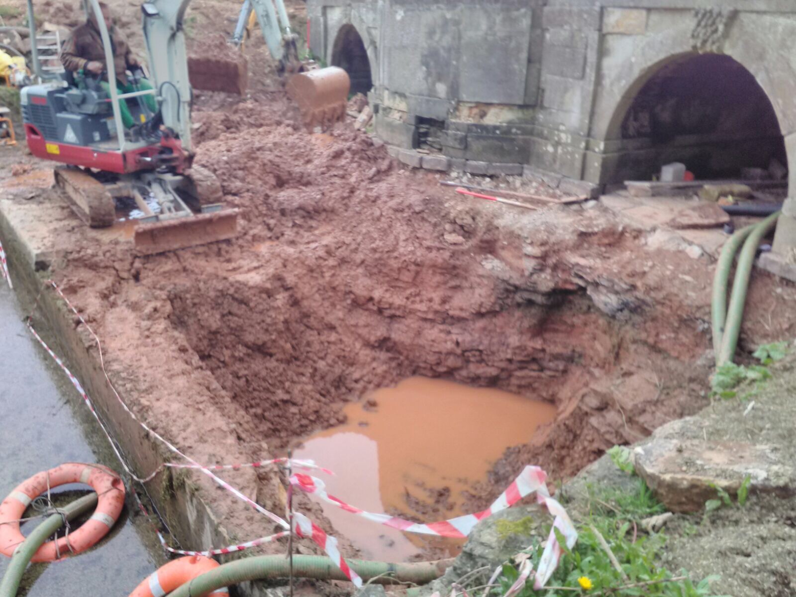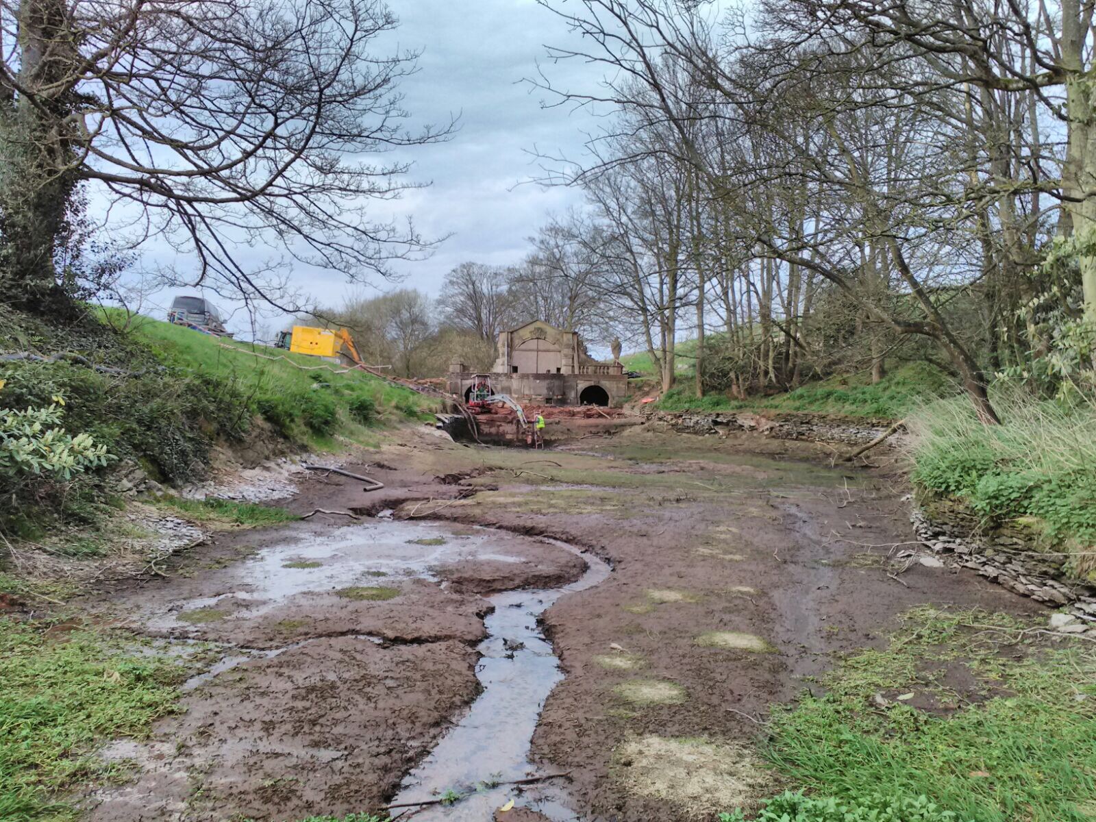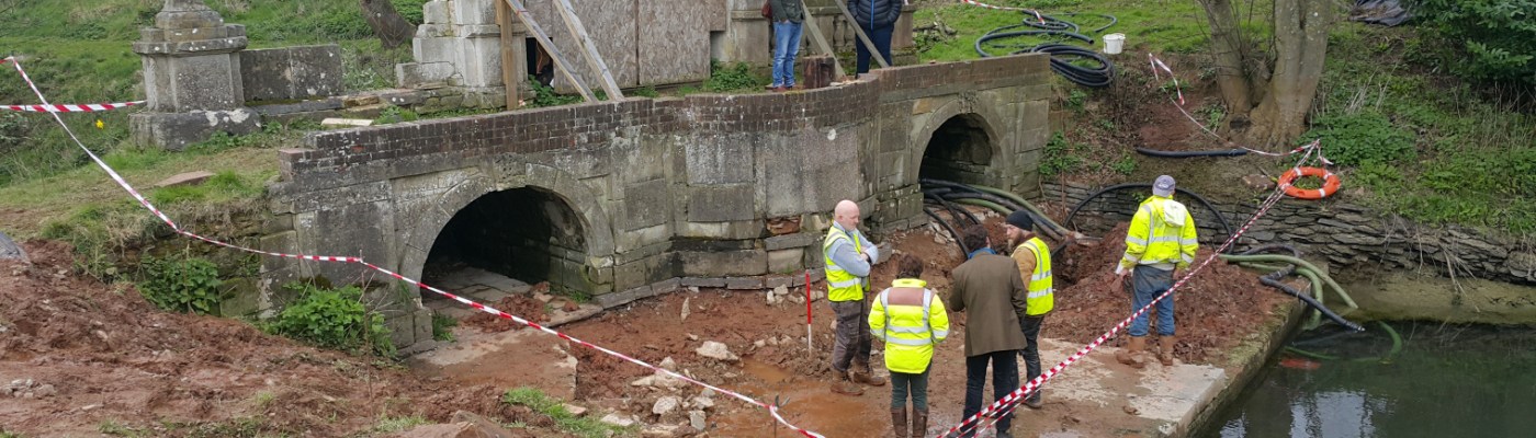 While much of the damaged and missing stone is being carved for the restoration of the bridge, the dam works have also been started so that the foundations and leaks are made good before the bridge structure itself is put back to its original glory.