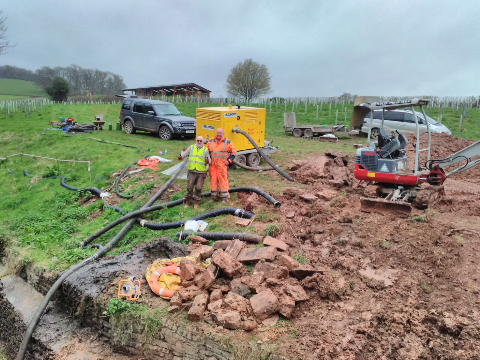 The pond being emptied for the safety of the dam works as well to prepare the area for de-silting and bank wall repair works.
