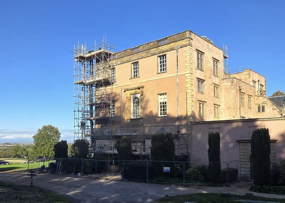 We found much older window openings of ham stone, predating our timber sash windows of the 1680’s and 1750’s. We also found that the quoins at the north corner, left in the image, were not structural but had been set into an existing mort slate wall. It was beginning to look as though the west façade was going to unlock the lost history of Halswell House, how, and when, this north range was built.