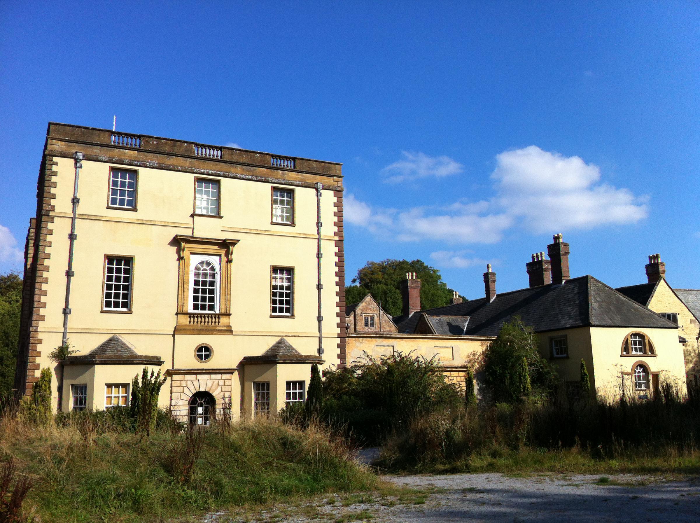 The west façade c. 1962, when the estate had been broken up and the main house, or Mansion House, was used only for storage. The façade you see above is the result of the restoration after the fire 40 years earlier. However not all of the new materials and techniques worked as well as others. Concrete was used to render the west façade. This was put over the older porous materials that made up the wall: mort slate from the earliest times, ham stone dressings from the 1680’s and red brick from the 1753 facelift. Concrete has a very unfortunate effect on old buildings which need to ‘breath’ and let moisture out. The concrete seals it in, between itself, and the wall behind. Ultimately, chunks would fall off, only to be repaired with more concrete, not to mention the insidious retention of moisture inside the building itself. This sorry state was halted recently by the current owner. The concrete was removed to let the building dry out for a long period, and breath again properly.