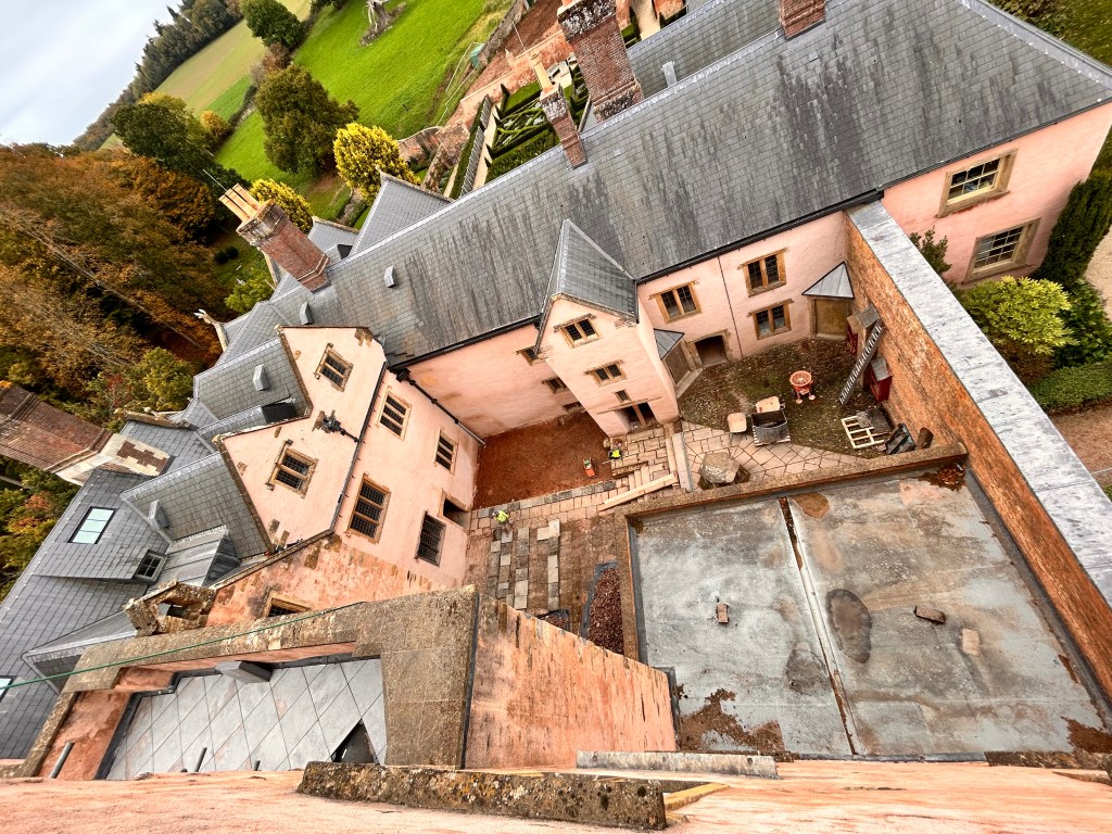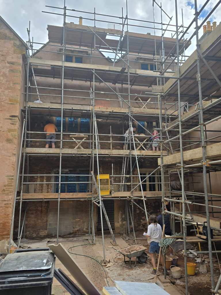 The badly scarred old manor house is now revealed and the careful and very technical procedure of rebuilding correctly begins.