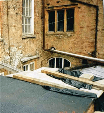 A particular problem was created when a lean-to red brick stair tower was added, breaking through the original wall and removing two large stone windows. The lean-to was not tied into the building, leading to continual leaks and dry rot. This was made worse by the addition of a single story flat-roofed room which made water management from the roofs impossible. While stylistically not completely out of sympathy with the buildings their poor technical designs were badly damaging the original structures and reducing the historic and architectural significance of the heart of Halswell House. The old buildings original oak timbers around this area were almost non-existent by constant water ingress. By removing both of these structures the original buildings fabric could be restored and maintained long-term. The patchwork of soil pipes, water pipes, concrete, flat roofs and other inappropriate materials could finally be rationalised and removed.
