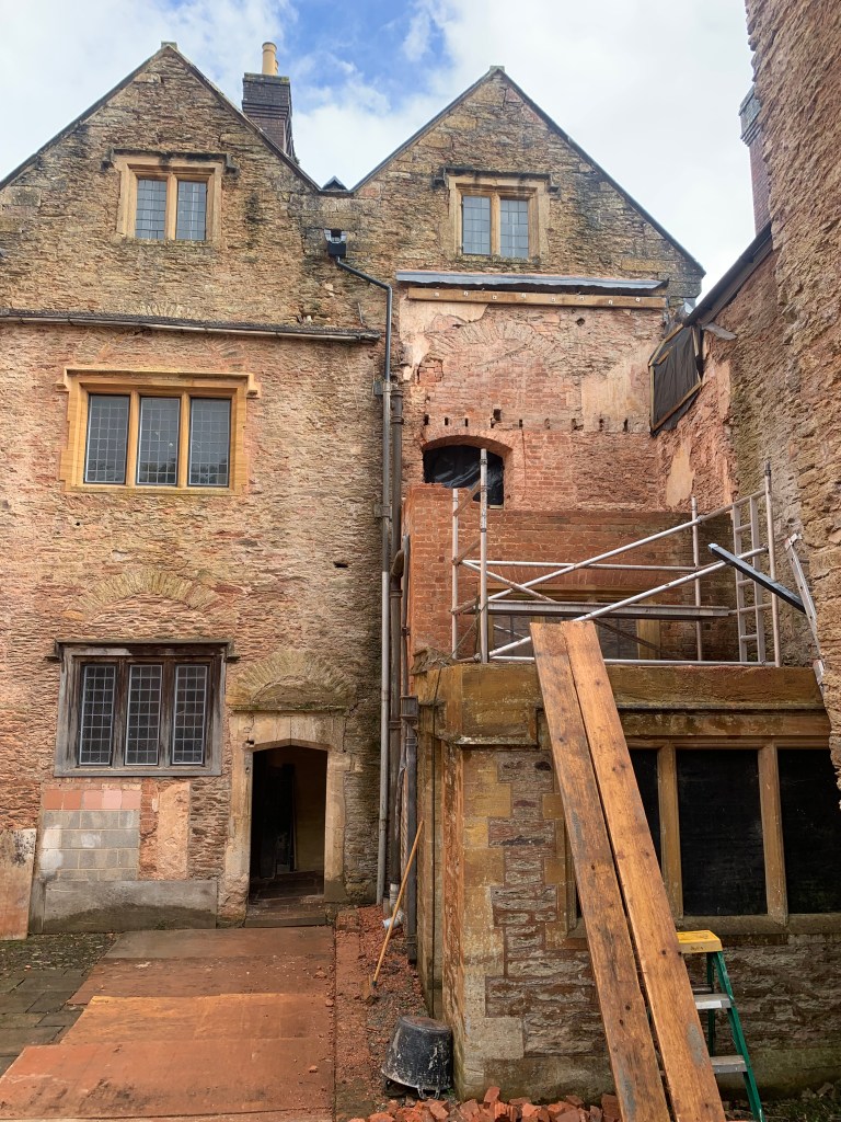 The morte slate relieving arches, which all of the Halswell’s mullion windows have above them, had been removed when the stair tower went in. While not structurally needed above a stone window they are a feature of the building style at Halswell and were remade above the window openings, where the original Elizabethan stone mullions windows were re-inserted.