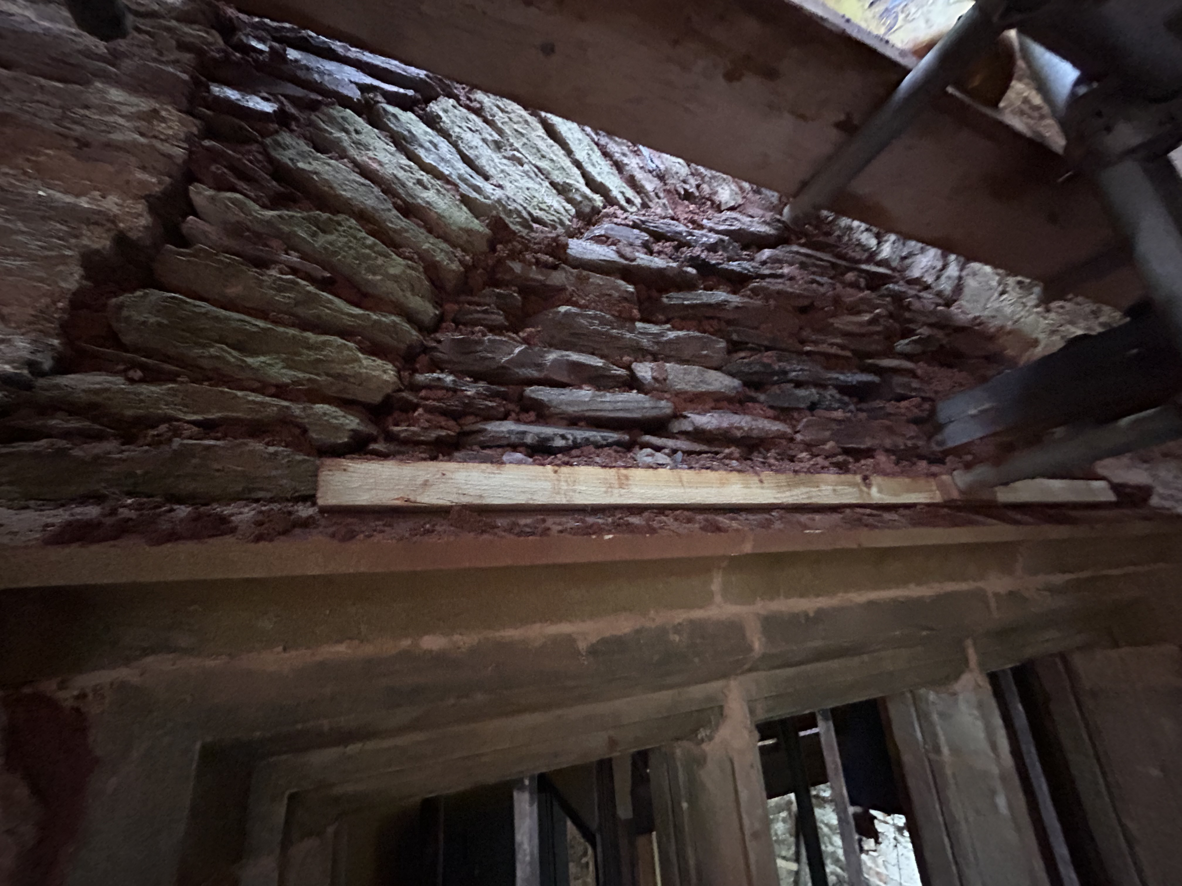 Rotten lintels and nineteenth century doors all need careful pinning, removing, rebuilding and restoring.